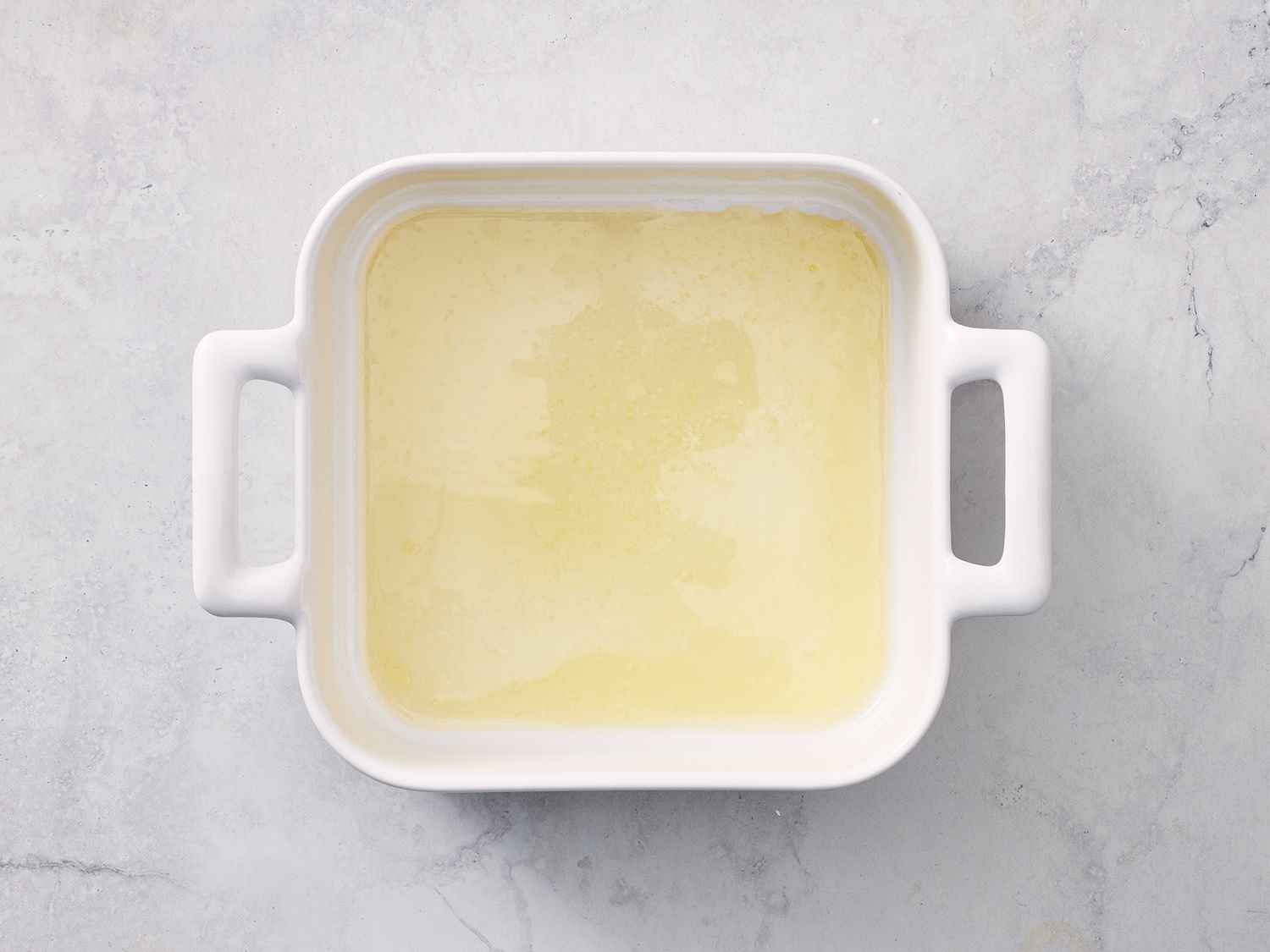 - Step 2:Put butter in an 8-inch square or 9-inch round pan; place in the oven until butter is melted. Remove the pan from the oven and set aside. Dotdash Meredith Food Studios